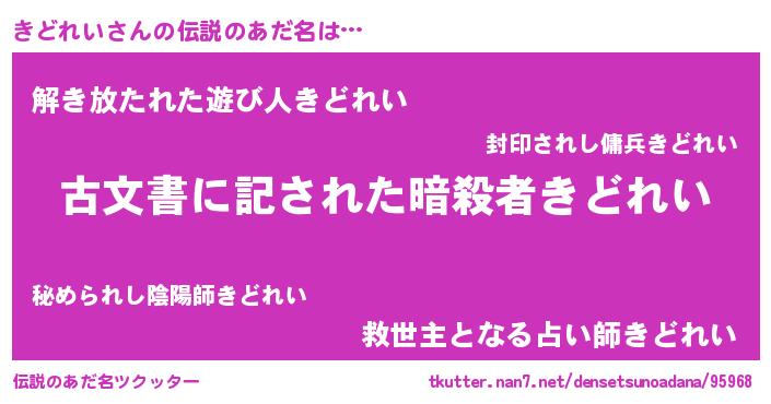 | 男性向けラノベタイトル風あだ名 | 『この素晴らしい世界にきどれいを!』 |