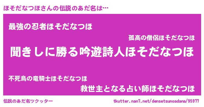 | ヒーロー風カッコイイあだ名 | 『ネオホソダナツホ』『魔戒騎士ホソ』 |
