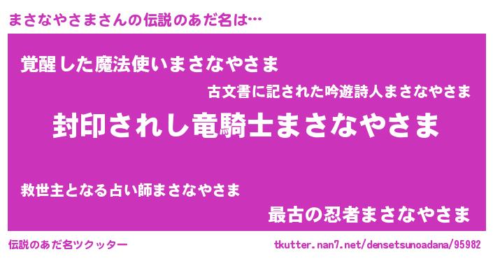 | ヒーロー風カッコイイあだ名 | 『スーパーマサナヤサマ』『天弓騎士マサ』 |