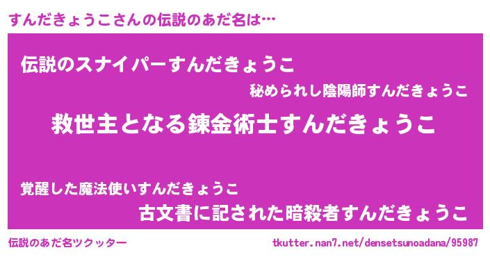| 女子向けラノベタイトル風あだ名 | 『すんだきょうこストレイドッグス』 |