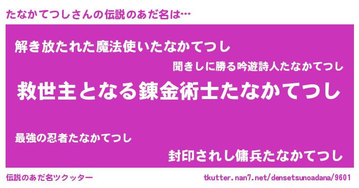 | ヒーロー風カッコイイあだ名 | 『慈愛の使者たなかてつし』 |