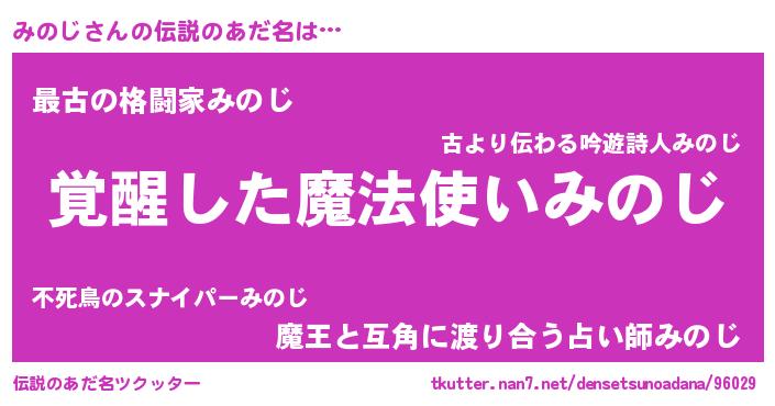 | ヒーロー風カッコイイあだ名 | 『炎刃騎士ミノ』『ウルトラみのじマン』 |