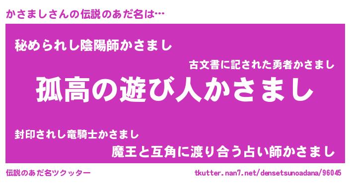 | 男性向けラノベタイトル風あだ名 | 『緋弾のカサマシ』 |