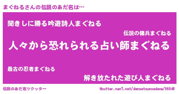 | 女子向けラノベタイトル風あだ名 | 『まぐねるなんてお断りですっ。』 |