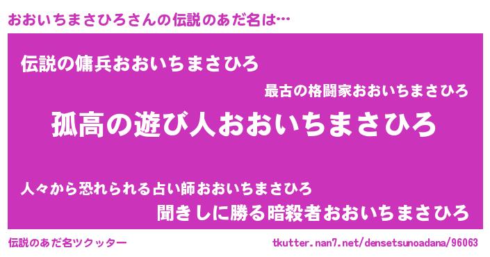 | 意味不明あだ名 | 『とにかく怪しいおおいちまさひろ』 |