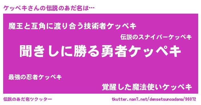 | ヒーロー風カッコイイあだ名 | 『ウルトラ戦士ケッペキ』『ネオケッペキ』 |