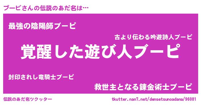 | 意味不明あだ名 | 『とにかく怪しいブーピ』『自称ブーピ』 |