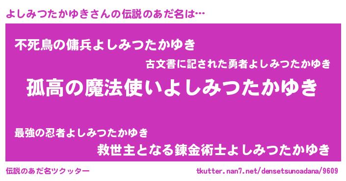| 胡散臭い通販商品みたいなあだ名 | 『信頼と実績のサプリメント…その名も「よしみつたかゆき」』 |