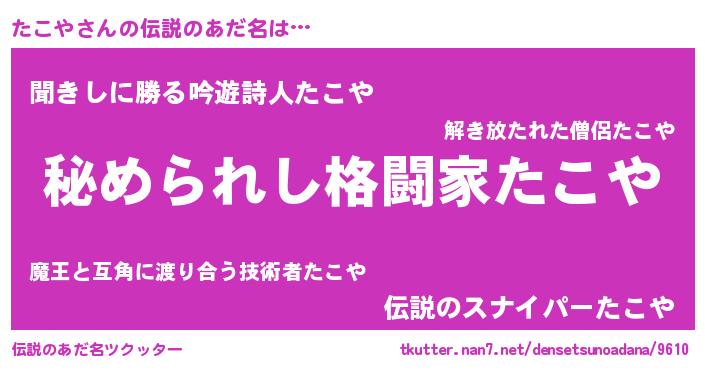 | ヒーロー風カッコイイあだ名 | 『超時空戦士タコヤ』『ネオタコヤ』 |