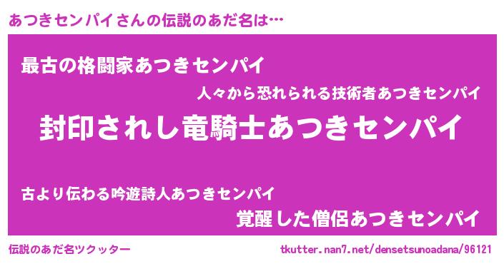 | ヒーロー風カッコイイあだ名 | 『スーパーアツキセンパイ』 |