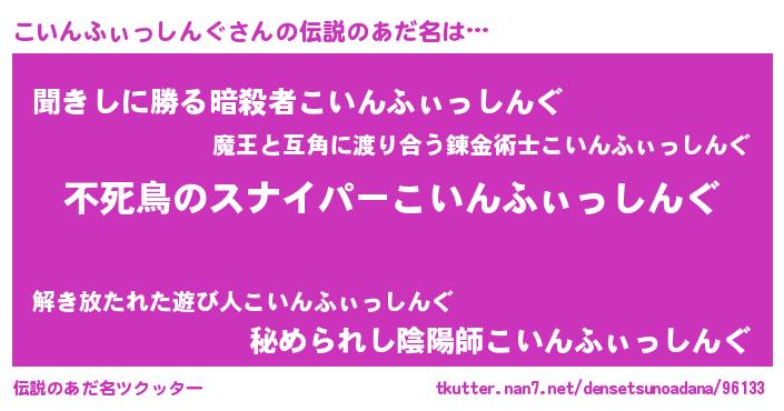 | 女子向けラノベタイトル風あだ名 | 『こいんふぃっしんぐ姫と円卓の騎士』 |