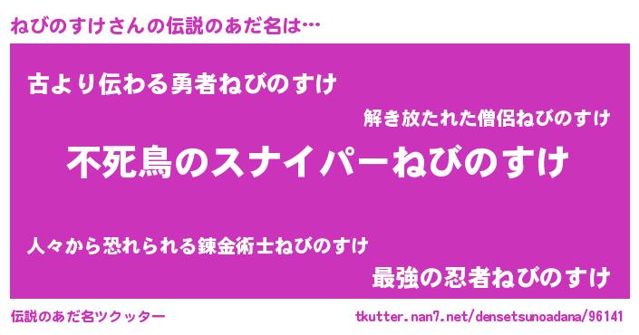 | 意味不明あだ名 | 『ペロリンねびのすけ』『自称ねびのすけ』 |