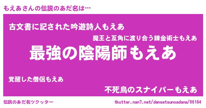| 意味不明あだ名 | 『もえあフォーエバー』『永久保存もえあ』 |