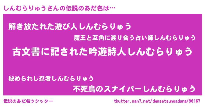 | 意味不明あだ名 | 『永久保存しんむらりゅう』 |