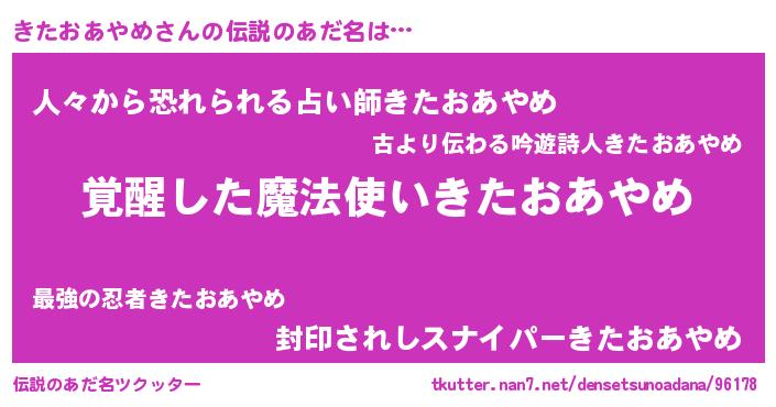 | 意味不明あだ名 | 『とにかく怪しいきたおあやめ』 |