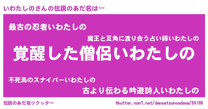 | ヒーロー風カッコイイあだ名 | 『炎刃騎士イワ』『ネオイワタシノ』 |