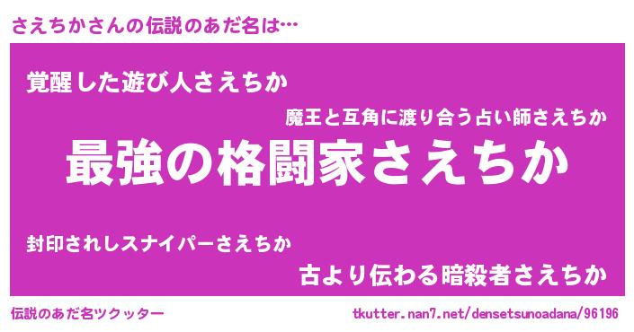 | ヒーロー風カッコイイあだ名 | 『ウルトラさえちかマン』『炎刃騎士サエ』 |