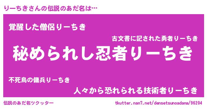 | ヒーロー風カッコイイあだ名 | 『ウルトラりーちきマン』『天弓騎士リー』 |