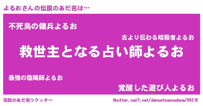 | ヒーロー風カッコイイあだ名 | 『究極戦士ヨルオ』『慈愛の使者よるお』 |