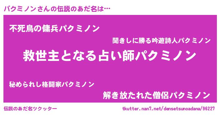 | 自動車の名前っぽいあだ名 | 『パンR』『レクパス』『パクティマ』 |