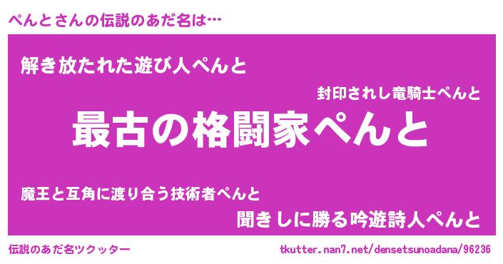 | 男性向けラノベタイトル風あだ名 | 『うちの娘の為ならば、俺はもしかしたらぺんとも倒せるかもしれない。』 |