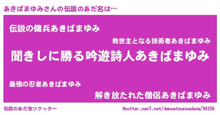 | 意味不明あだ名 | 『永久保存あきばまゆみ』 |