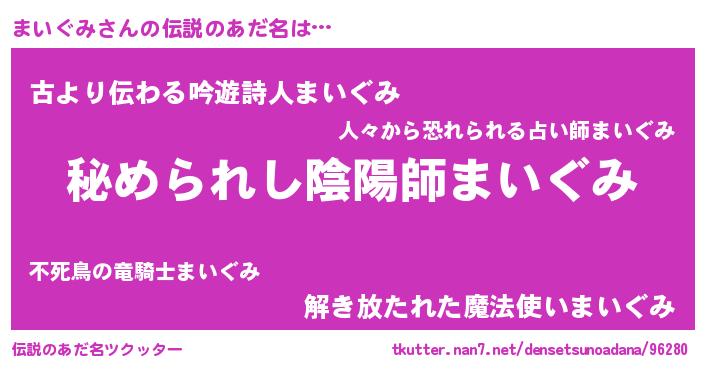 | ヒーロー風カッコイイあだ名 | 『ウルトラまいぐみマン』『仮面マイダー』 |