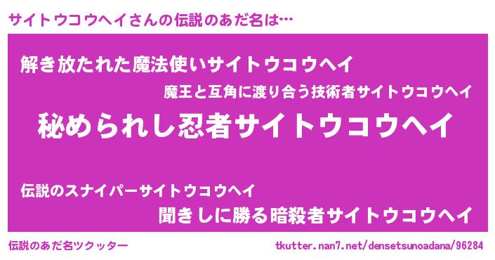 | ヒーロー風カッコイイあだ名 | 『ウルトラサイトウコウヘイマン』 |