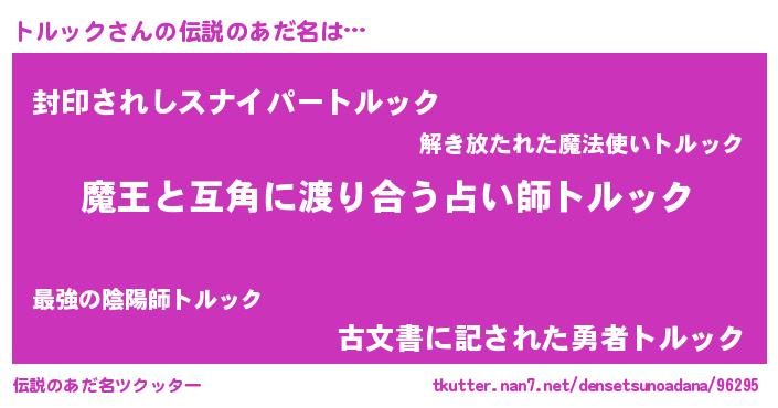 | ヒーロー風カッコイイあだ名 | 『慈愛の使者トルック』『ネオトルック』 |