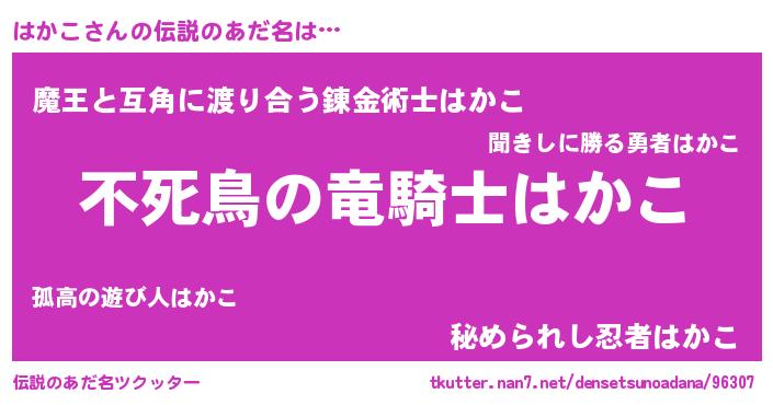 | ヒーロー風カッコイイあだ名 | 『サイバー戦士ハカコ』『スーパーハカコ』 |