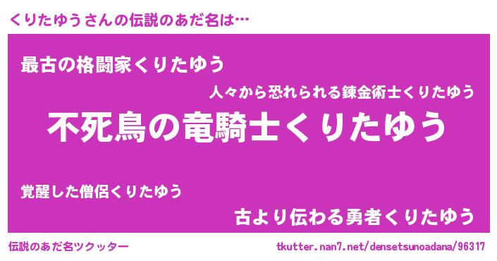 | 女子向けラノベタイトル風あだ名 | 『くりたゆう姫と円卓の騎士』 |