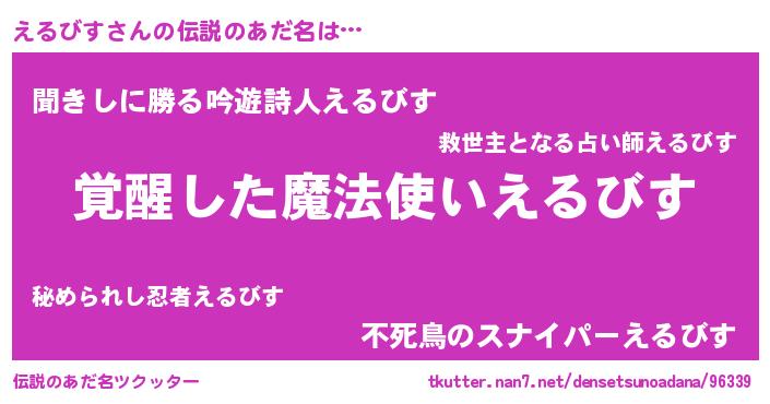 | ポケモン風あだ名 | 『ヒエルビス』『エルセウス』 |