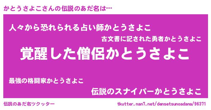 | 女子向けラノベタイトル風あだ名 | 『かとうさよこストレイドッグス』 |