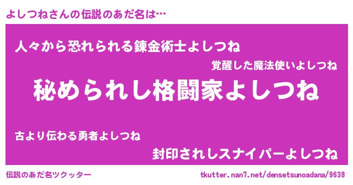 | ファンタジー風あだ名 | 『エターナルヨシツネー』『クインヨット』 |