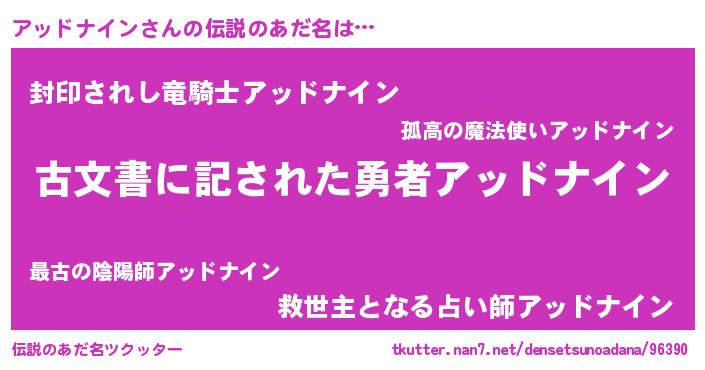 | 意味不明あだ名 | 『永久保存アッドナイン』 |
