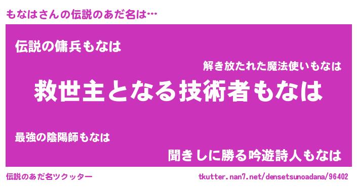 | ヒーロー風カッコイイあだ名 | 『天空の使者もなは』『スーパーモナハ』 |