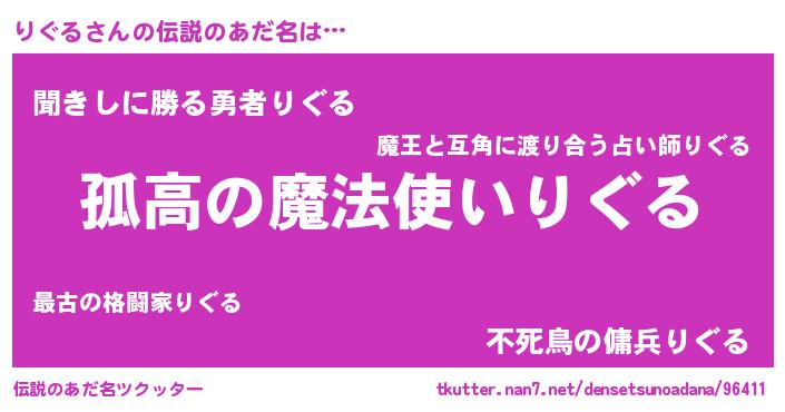 | 男性向けラノベタイトル風あだ名 | 『リグルスレイヤー』『魔弾の王とりぐる』 |