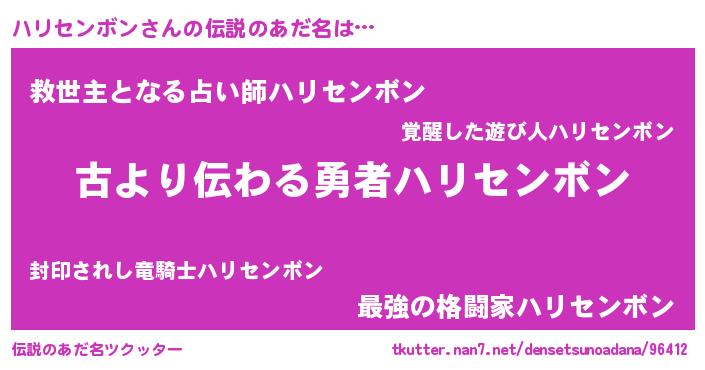 | 胡散臭い通販商品みたいなあだ名 | 『来世でも幸せになれる水素水…その名も「ハリセンボン」』 |