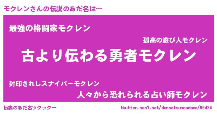 | ヒーロー風カッコイイあだ名 | 『ウルトラ戦士モクレン』『ネオモクレン』 |