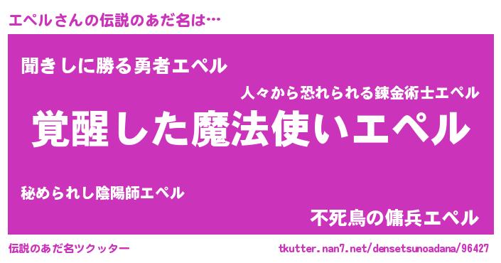 | 男性向けラノベタイトル風あだ名 | 『エペルに滅ぼされるだけの簡単なお仕事です』 |