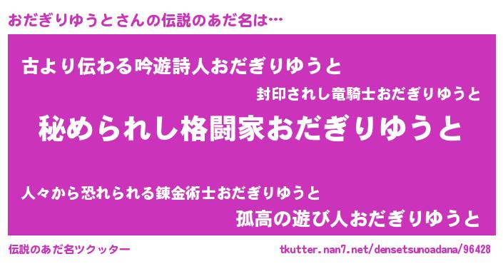 | 意味不明あだ名 | 『自称おだぎりゆうと』 |