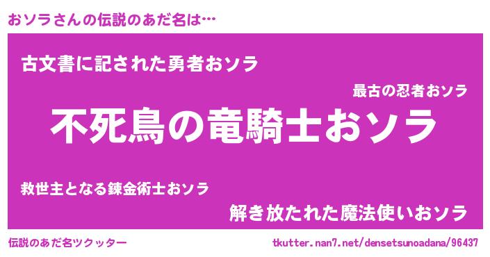 | 女子向けラノベタイトル風あだ名 | 『おソラ姫と円卓の騎士』『闇のおソラ』 |