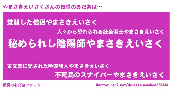 | ファンタジー風あだ名 | 『エターナルヤマサキエイサクー』 |
