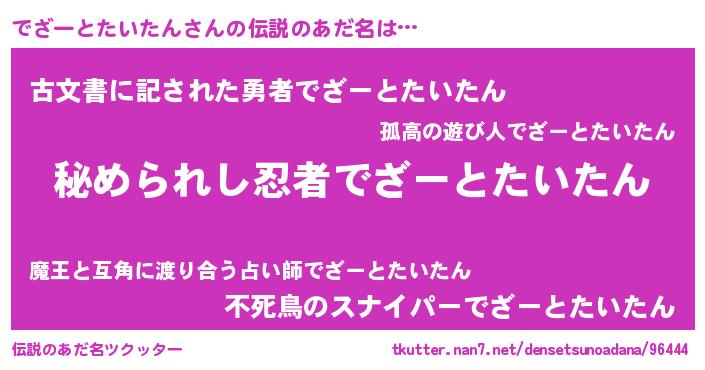 | 意味不明あだ名 | 『自称でざーとたいたん』 |