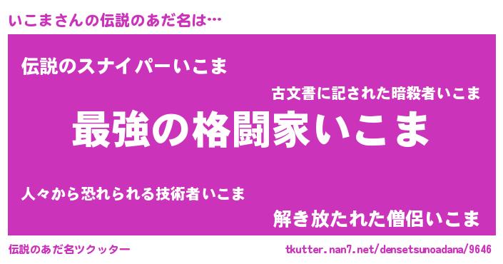 | 意味不明あだ名 | 『住所不定無職いこま(1歳)』 |