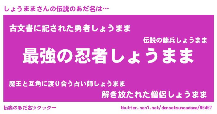 | 胡散臭い通販商品みたいなあだ名 | 『あなたにだけ特別に提供する限定10本のレアな日本酒…その名も「しょうまま」』 |