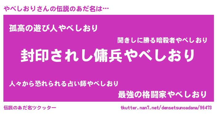 | 胡散臭い通販商品みたいなあだ名 | 『億万長者になれる水晶球…その名も「やべしおり」』 |