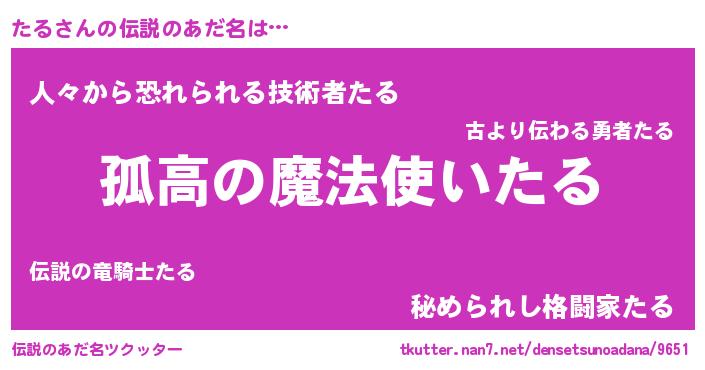 | 男性向けラノベタイトル風あだ名 | 『タルスレイヤー』『魔法科高校のたる』 |