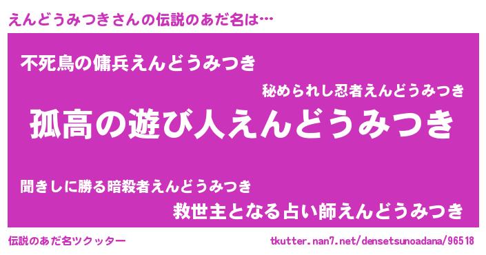 | 意味不明あだ名 | 『住所不定無職えんどうみつき(74歳)』 |