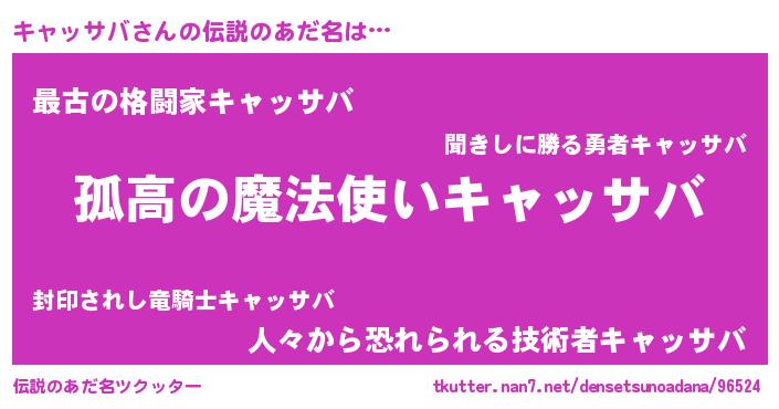 | ヒーロー風カッコイイあだ名 | 『暗黒騎士キャ』『愛の使者キャッサバ』 |